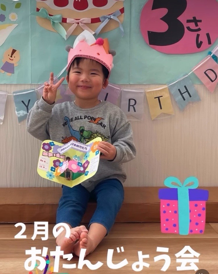 2月生まれのおともだちのお誕生会をしました🎂今回のおともだちは2月に入園したばかり⭐️最初は少し緊張している様子でしたが今まで見たことのないくらいの笑顔をみせてくれてまわりもうれしくなってしまいました思い出たくさん作ろう…