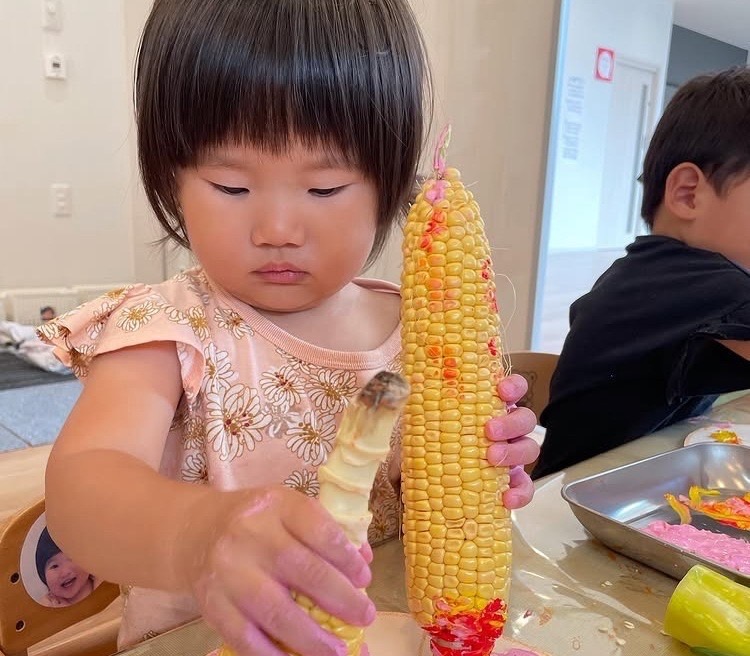 とうもろこしの皮を一生懸命上手に剥いてくれました👏
